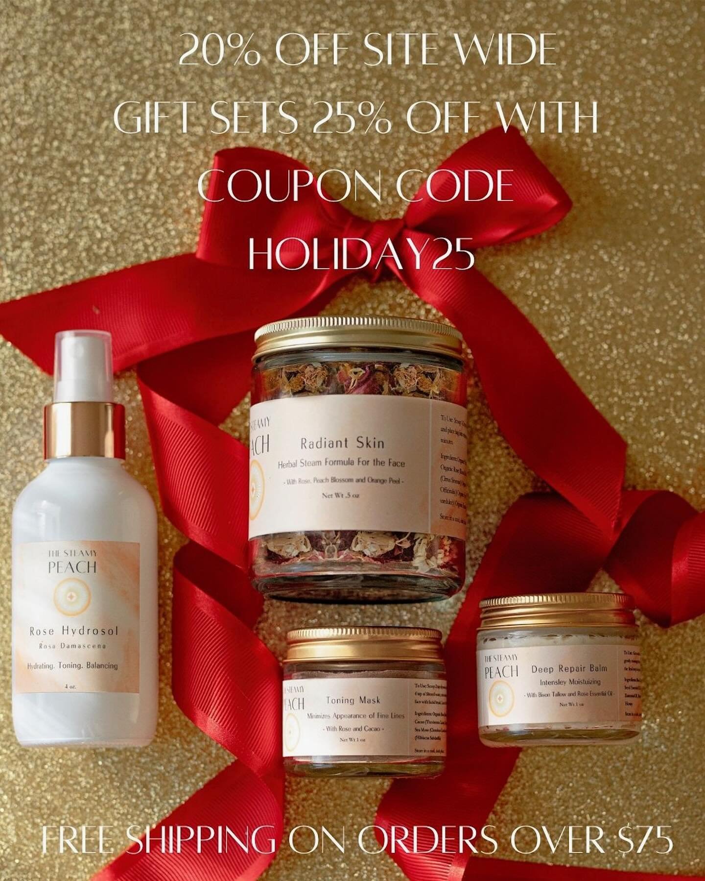 Enjoy 25% off all gift sets with coupon code HOLIDAY25. Whether you’re wanting to bask in relaxation or wanting to give the gift of plump, radiant skin our botanical bundles make the perfect way to share nourishment, beauty, and self-care this holiday season.
